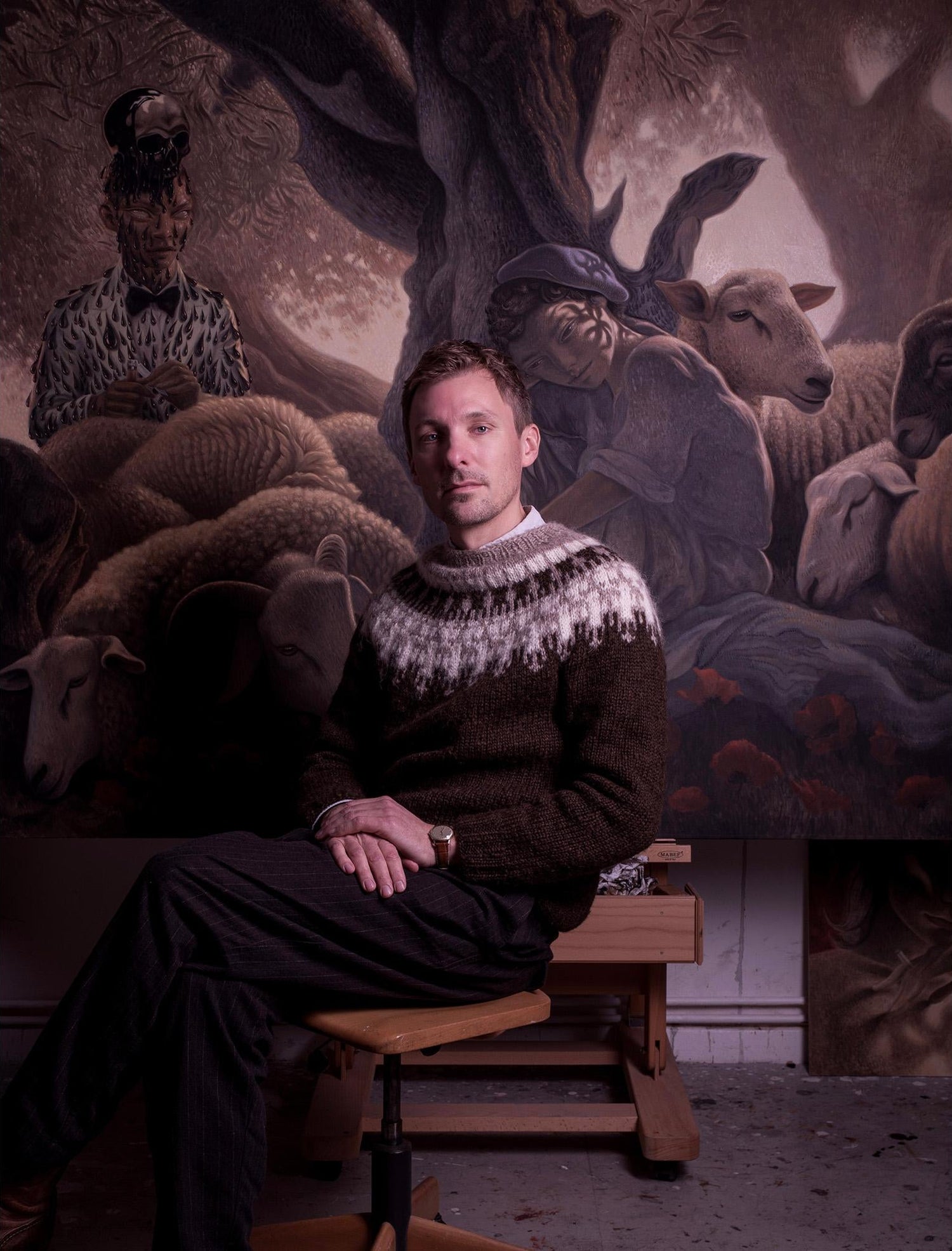 Dennis Scholl paints and draws pictures full of tenderness and compassion. The figures are his equals. It almost seems as if they are involved in the scenes being created. The world that has been growing in Scholl's studio for years is full of warmth. At the same time, it repeatedly harbors moments of heightened danger and violence. Perhaps to dispel these, the figures depicted often perform rituals and are rarely idle.